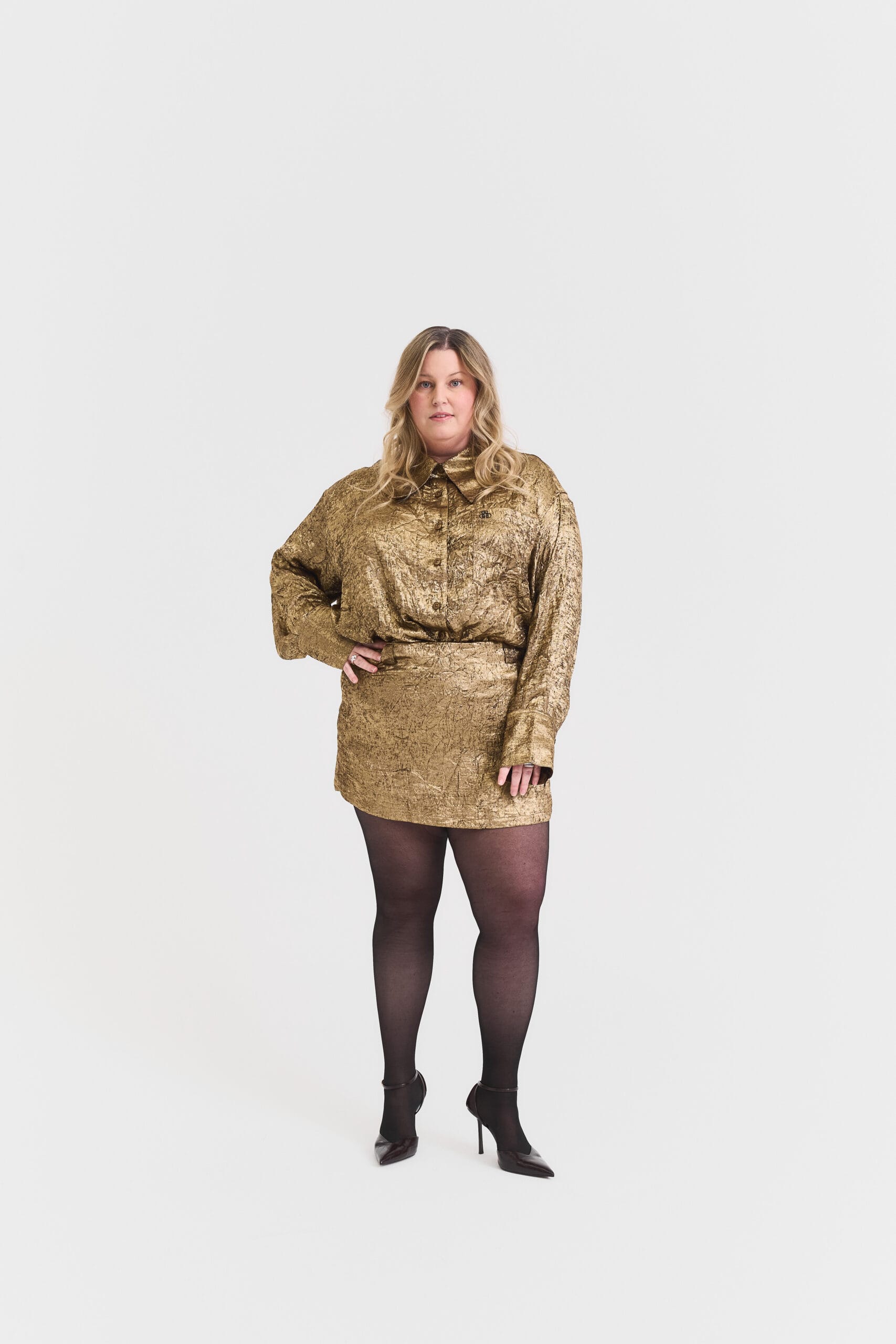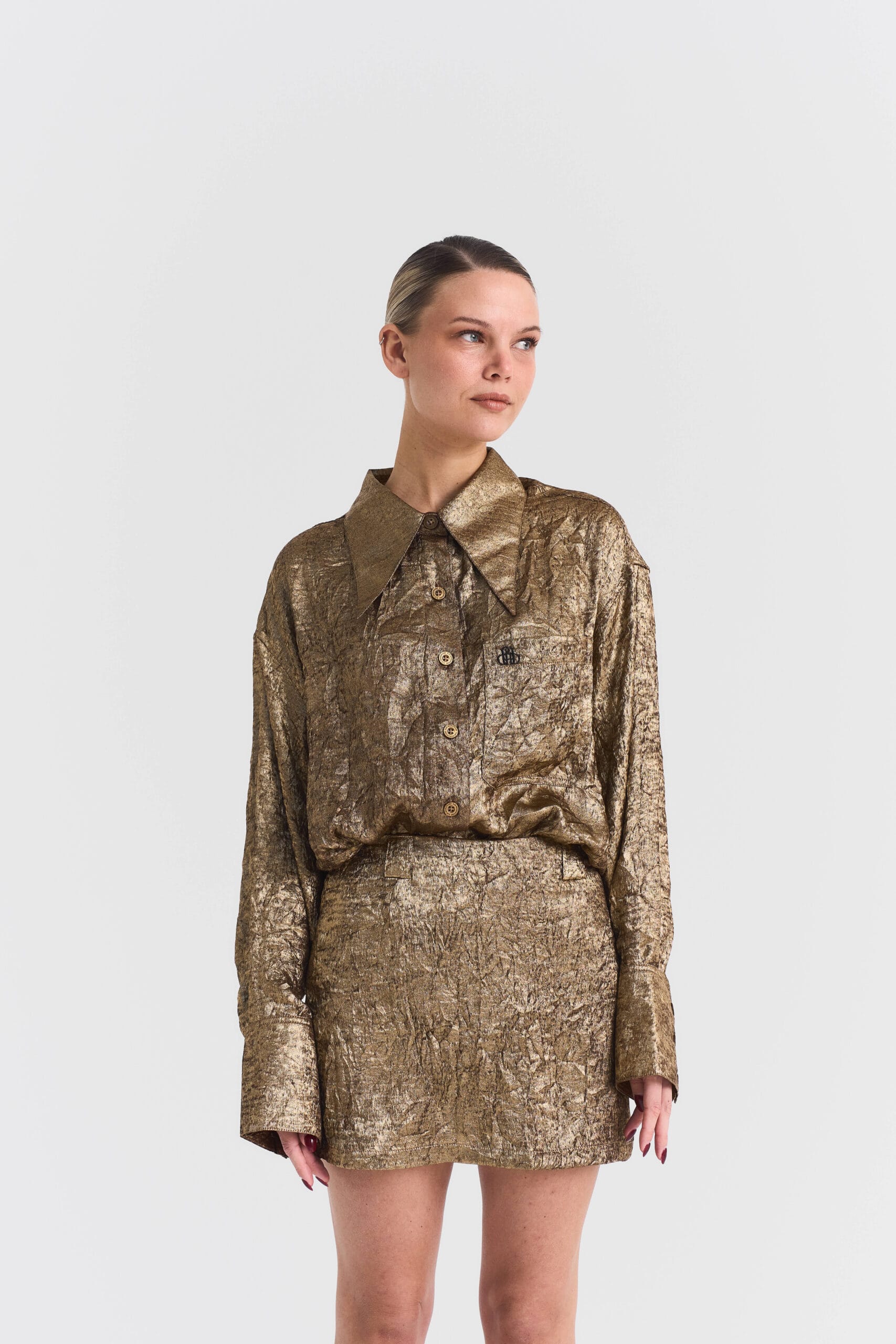 The Cassie Shirt is an oversized, airy shirt crafted from 100% polyester, designed for comfort, versatility, and timeless style. Its relaxed fit and lightweight fabric make it perfect to wear on its own or as part of the Cassie Set, paired with the matching Cassie Skirt for a coordinated, chic look. The shirt effortlessly combines sophistication and ease, making it a must-have piece in any modern wardrobe.